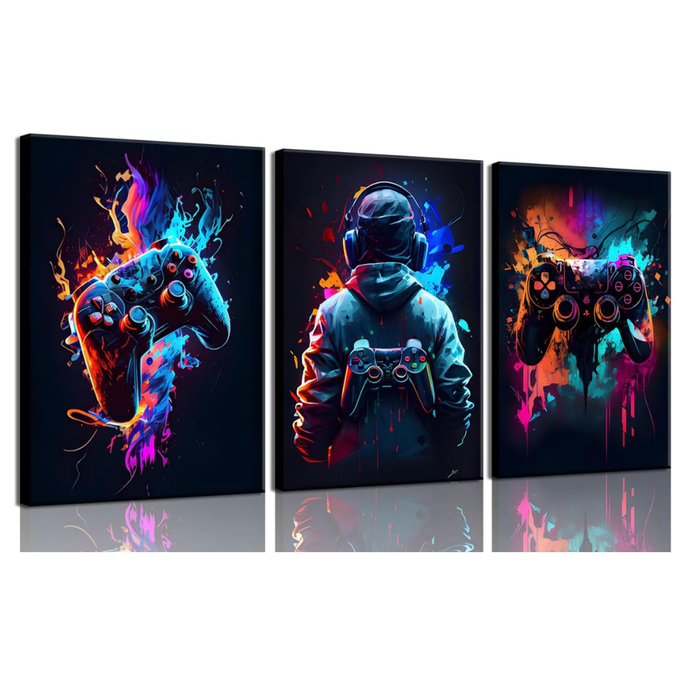 - 【Gaming Room Decor Gift Ideas】- High-Quality Watercolor Style Gaming Wall Art Also Mean To Be A Gift For Your Friends, Son, Nephew, Grandson, Teenagers, Teens, Kids, Colleague, Workmate Or Those Games Fans, Games Partner, Also Great Gift Ideas For Housewarming, Graduations, Christmas, Halloween, Easter, New Year. It Will Be A Impressive Wall Decoration To Decorate Your Living Or Gaming Space.