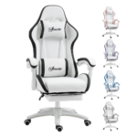- Stylish faux leather: White, with a coloured edge, this is a beautiful and impressive game chair. Brings character into your games room, home office and beyond.