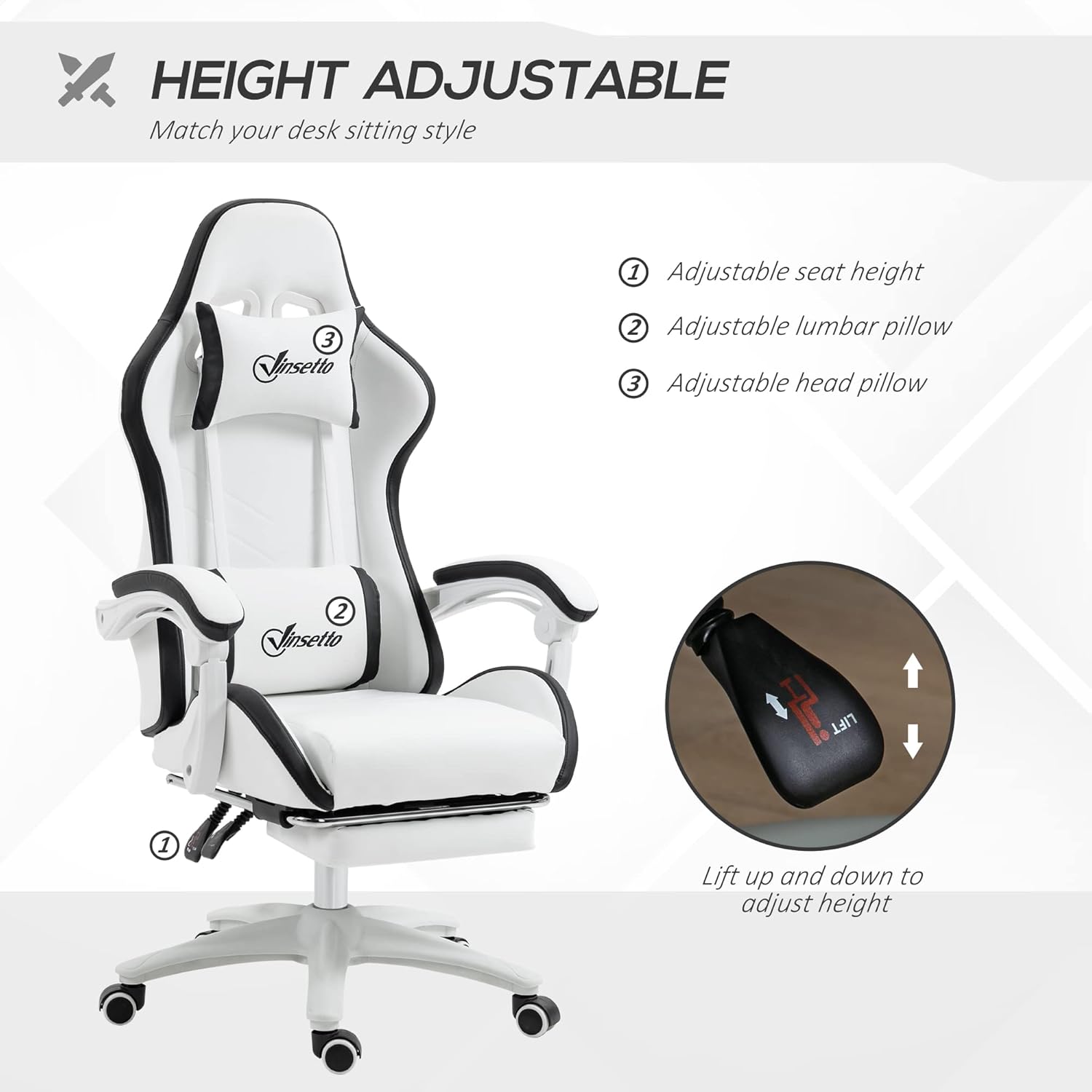 - Padded, with head and lumbar pillows included: Sit and game in comfort in this computer chair. Adjustable top and lower pillows for personal support.