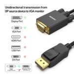 • INCREDIBLE PERFORMANCE – The DisplayPort male to VGA Male converter supports resolutions up to 1920×1080@60Hz (1080p Full HD) including 720p, 1600×1200, 1280×1024 for high definition monitors or projectors; Gold plated DisplayPort connector resists corrosion and abrasion and improve the signal transmission performance; Molded strain relief increases cable durability