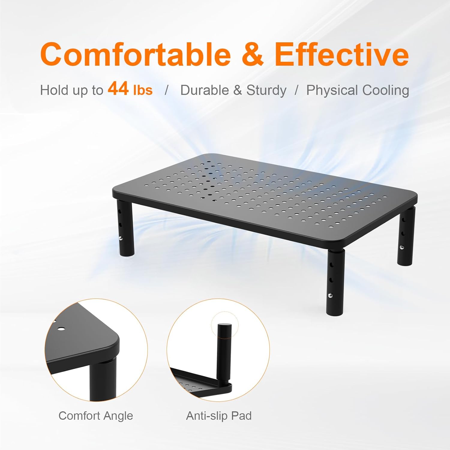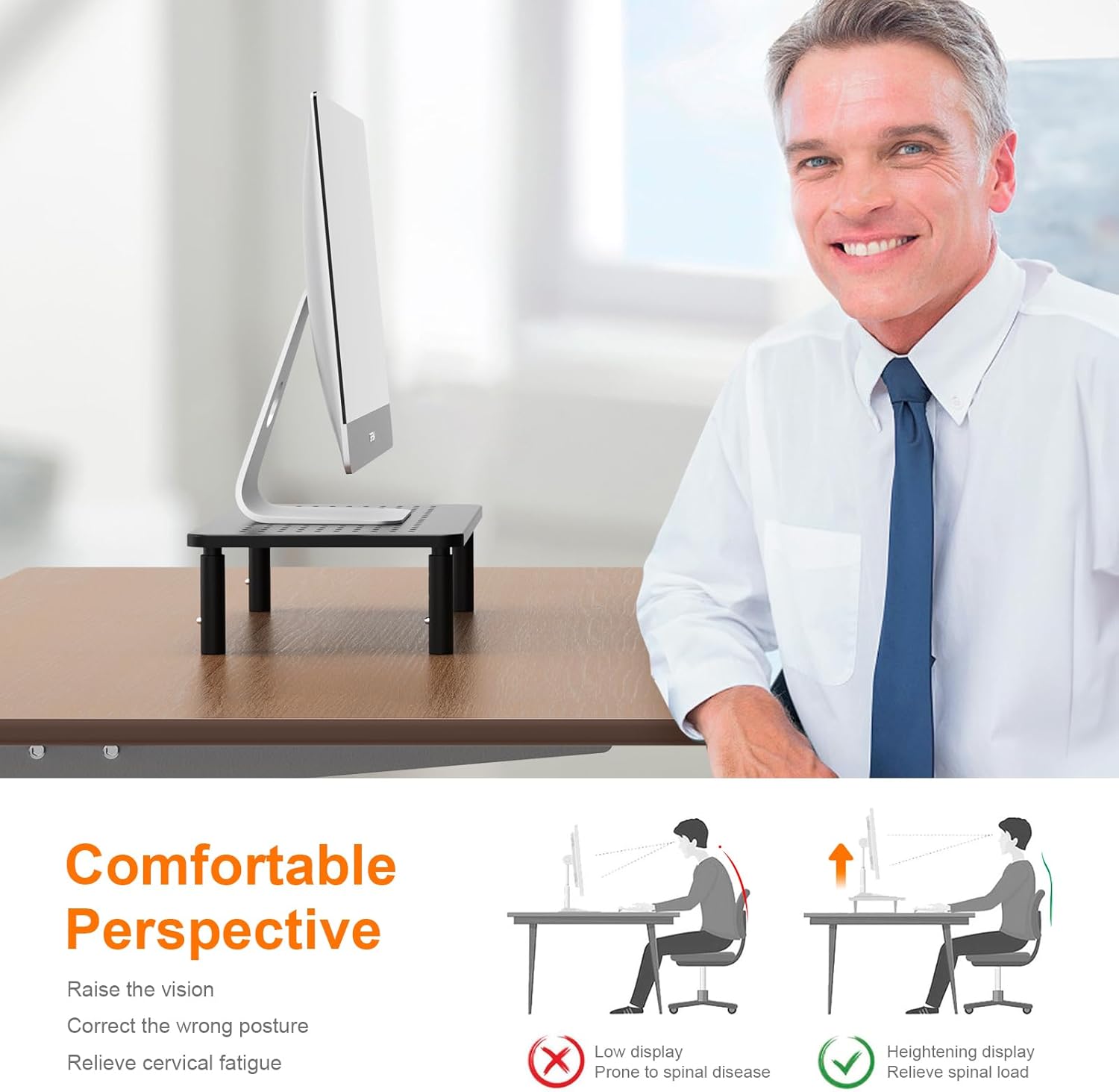 - ERGONOMIC COMFORT & POSTURE SUPPORT – Reduce neck and back strain with 3 quick-adjust height settings (100mm, 120mm, 140mm). Effortlessly raise your screen to a comfortable eye level to promote a healthier, more ergonomic posture and help prevent pain from long hours at your desk.