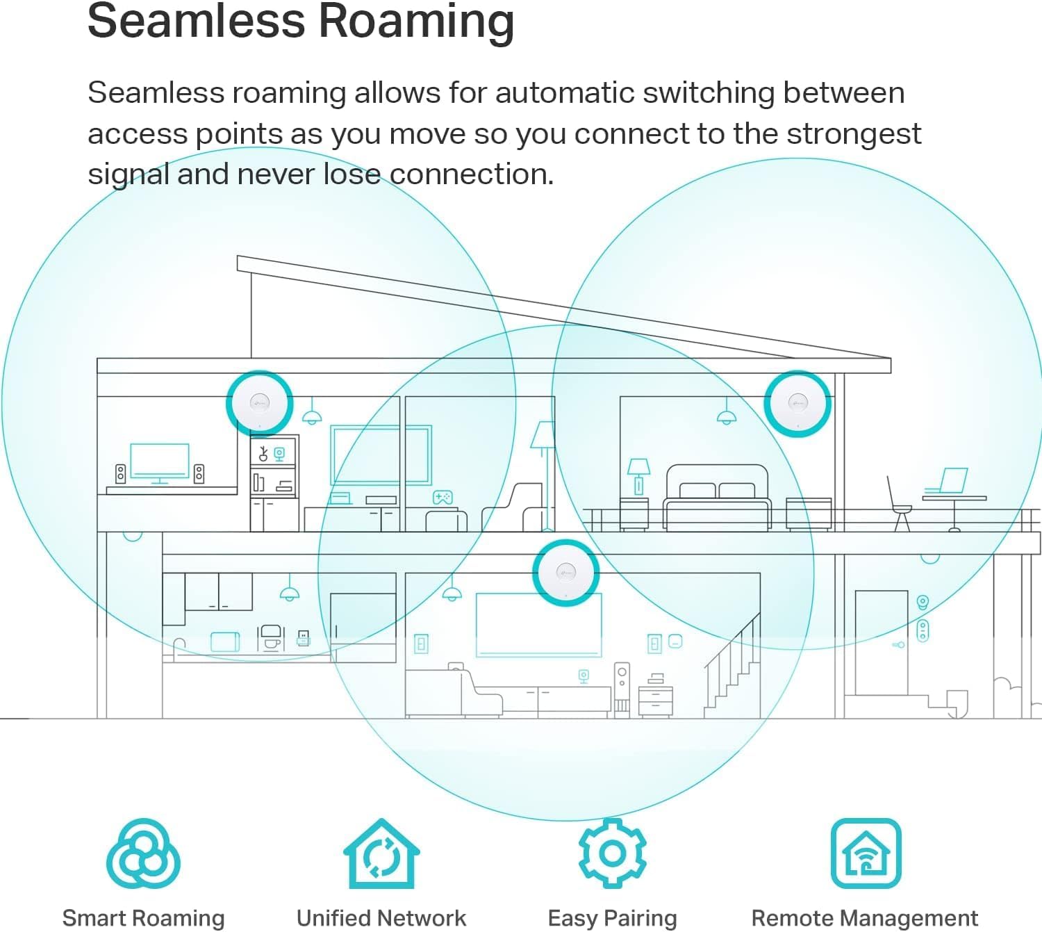 - 【Advanced Wireless Tech】Supports Mesh WiFi, Seamless Roaming*(Omada Mesh & Seamless Roaming require the use of Omada SDN controllers), WPA3, Band Steering, Load Balancing, Airtime Fairness and Beamforming technologies.
