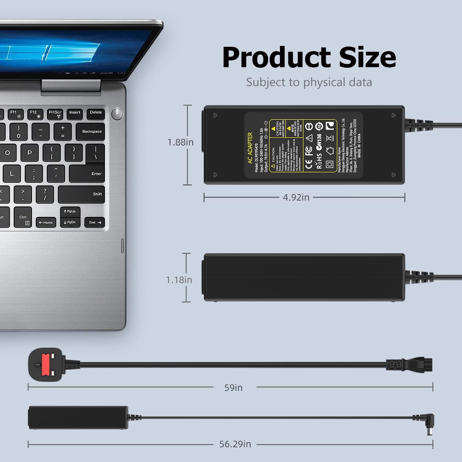 - Input: 100~240V 50/60Hz; Output: 19.5V 4.7A 90W MAX (Compatible with all SONY 19.5V 4.35A 85W; 19.5V 3.9A 76W; 19.5V 3.3A 65W); Connector Size: Φ 6. 5mm * Φ 4.4mm; The package contains: 1 x 19.5v tv power cable, 1 x User Manual.
